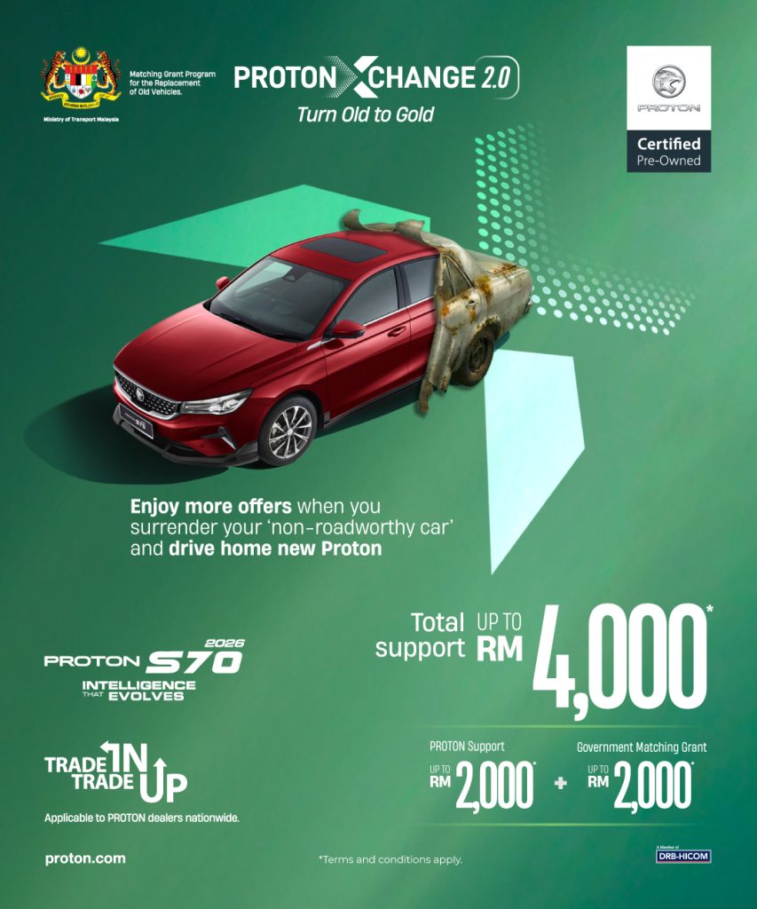 Rebat Tunai Mac 2026 sehingga RM20,000. Tempah sekarang! Proton S70 2026 Terbaru.